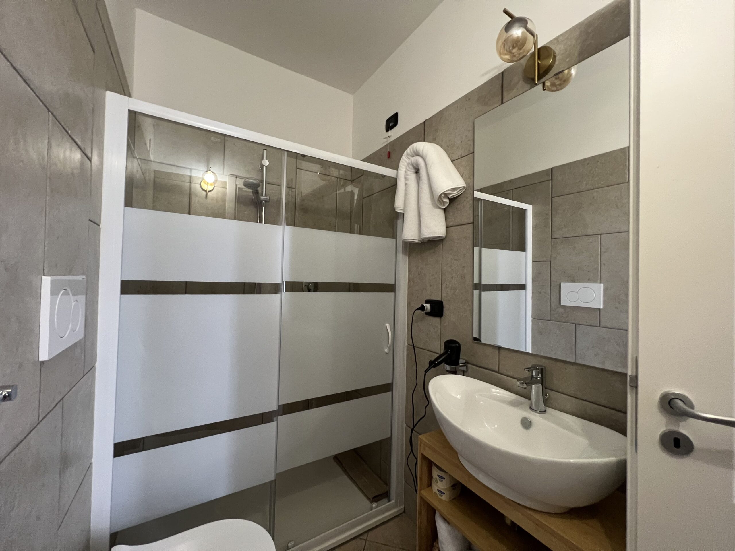 Tutte le camere sono dotate di un ampio e confortevole bagno con doccia, asciugamani e asciugacapelli. Il posto giusto dove prendersi cura del proprio corpo.