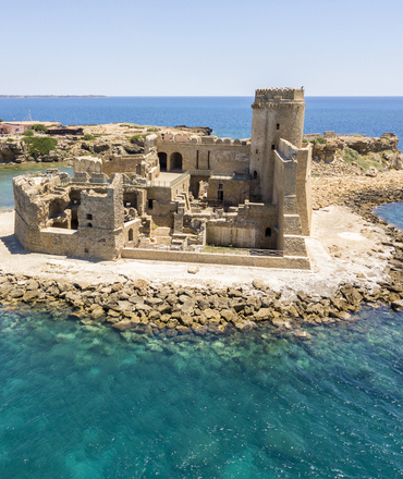 In uno dei tratti più belli dell'Area Marina Protetta "Capo Rizzuto" sorge uno dei castelli più affascinanti d'Italia, grazie anche alla sua particolare ubicazione che lo vede trionfare su un isolotto legato alla costa solo da una sottile lingua di terra.